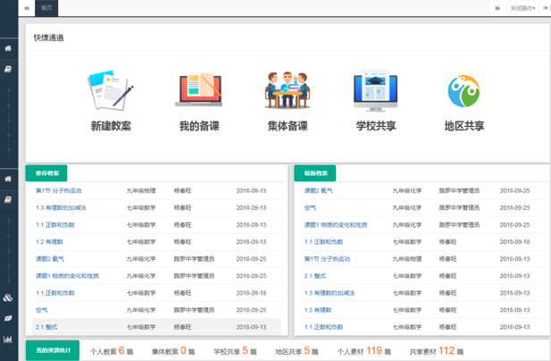 5、提供教师教案共享到学校、共享到中心区、或者不共享的功能;