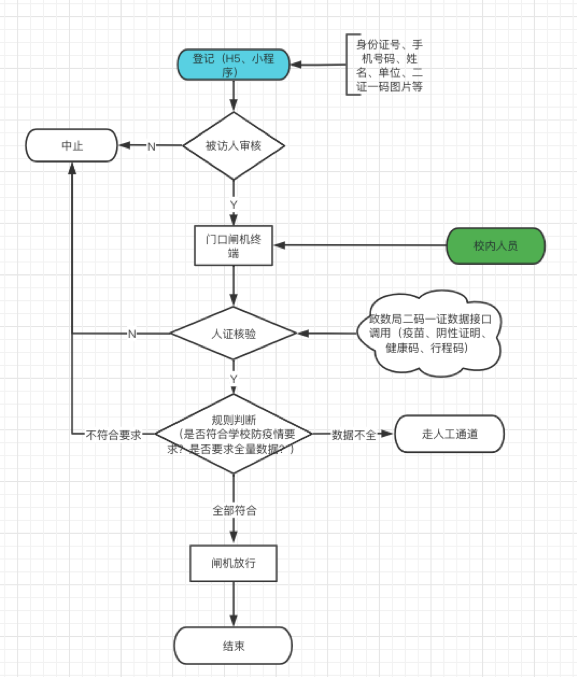 3. 建立基于身份证识别的外部人员到校来访申请规则,加强对校外人员、车辆的管理。